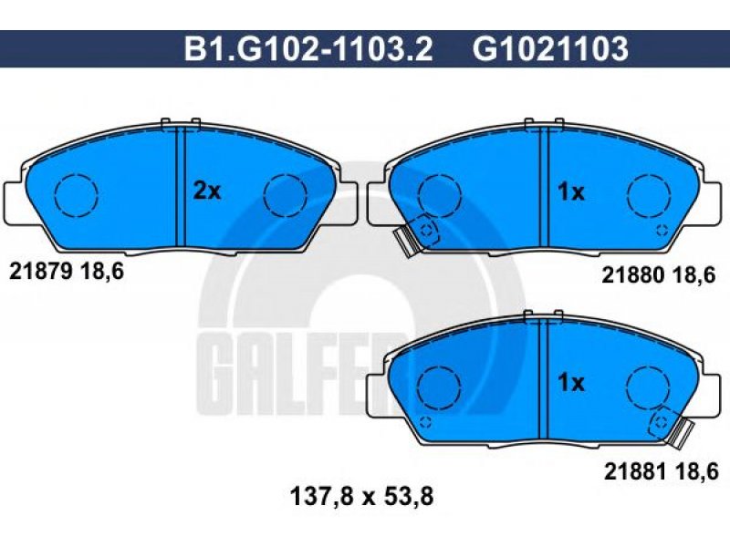 Stabdžių trinkelių rinkinys, diskinis stabdys B1.G102-1103.2 GALFER |