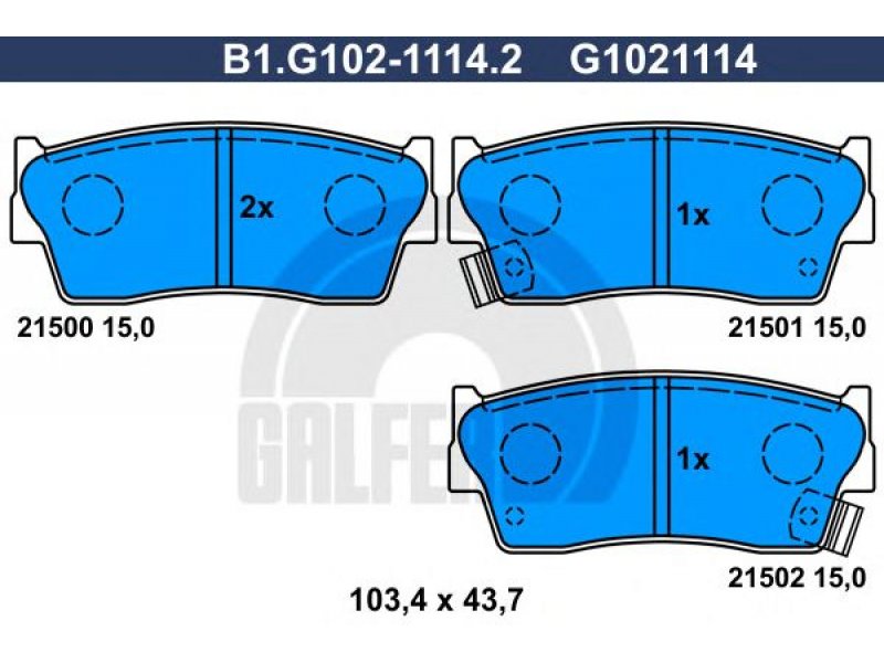 Stabdžių trinkelių rinkinys, diskinis stabdys B1.G102-1114.2 GALFER |