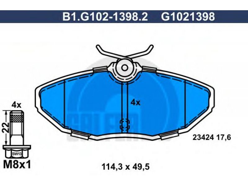 Stabdžių trinkelių rinkinys, diskinis stabdys B1.G102-1398.2 GALFER |