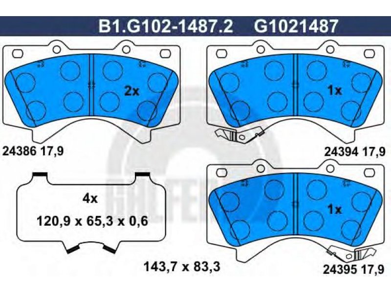 Stabdžių trinkelių rinkinys, diskinis stabdys B1.G102-1487.2 GALFER |