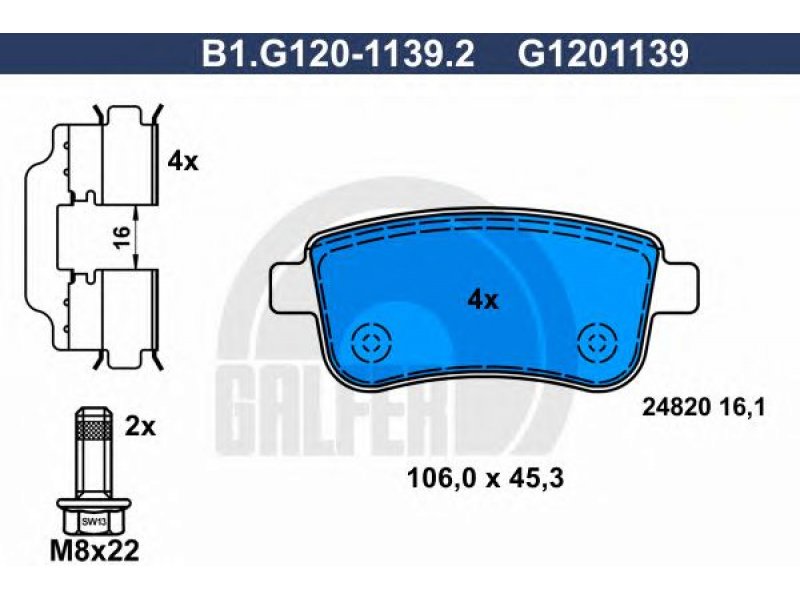 Stabdžių trinkelių rinkinys, diskinis stabdys B1.G120-1139.2 GALFER |