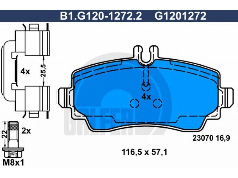 Stabdžių trinkelių rinkinys, diskinis stabdys B1.G120-1272.2 GALFER |