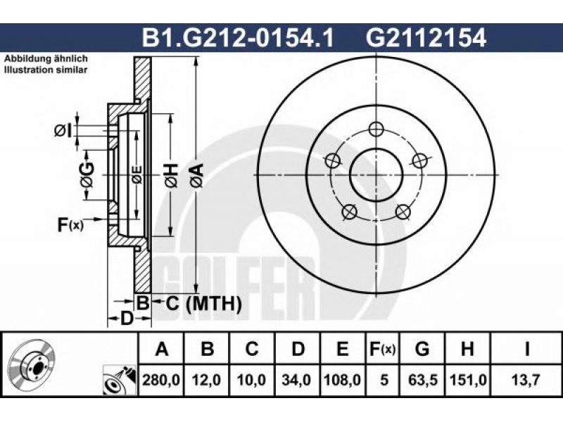 skersmuo [mm]: 280 stabdžių disko storis [mm]: 12 minimalus storis [mm]: 10 stabdžių disko tipas: visiškai angų skaičius: 5 paviršius: padengta aukštis [mm]: 34 centravimo skersmuo [mm]: 63,5 vidinis skersmuo [mm]: 151 angos apskritimo skersmuo [mm]: 108 angos Ø [mm]: 13,7 |
