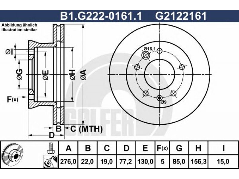 Stabdžių diskas B1.G222-0161.1 GALFER |