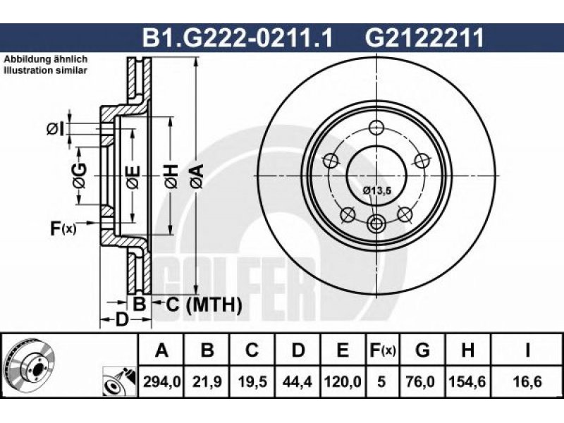 Stabdžių diskas B1.G222-0211.1 GALFER |