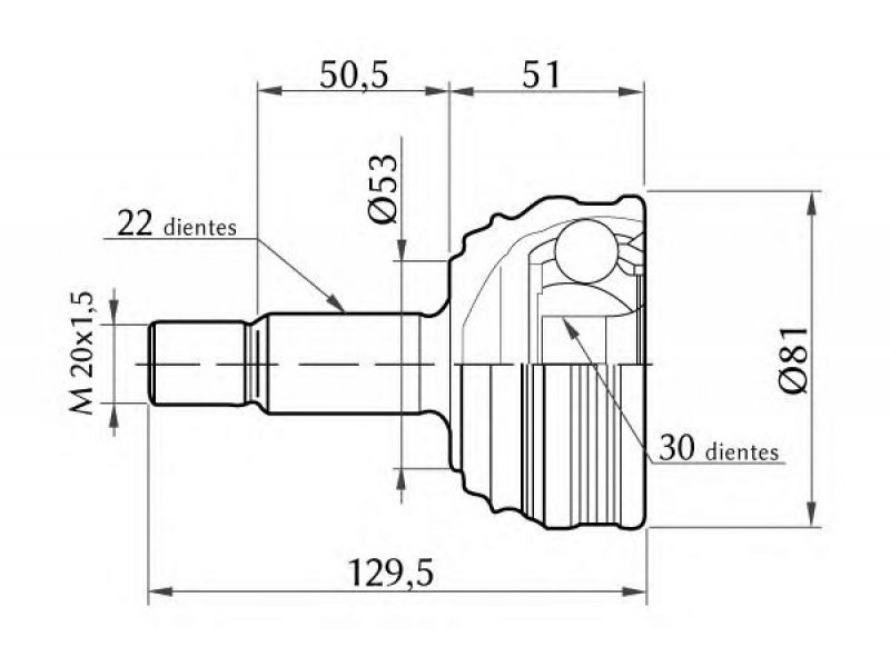 montavimo vieta: rato pusė išorinis krumplys, rato pusė: 22 vidinis krumplys, rato pusė: 30 sandariklio skersmuo [mm]: 53 išorinis skersmuo [mm]: 81 jungties tipas: CV sujungimas |