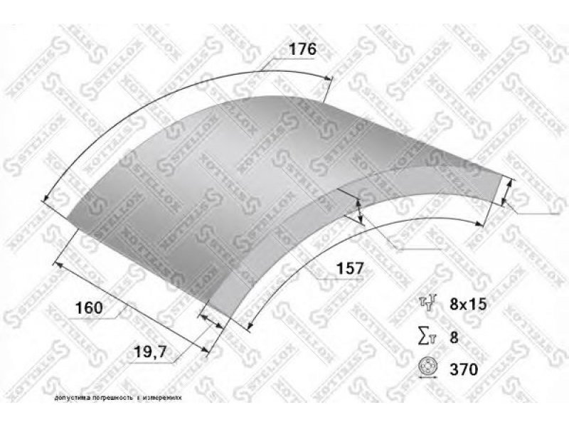 storis [mm]: 19,7 būgno skersmuo: 370 plotis [mm]: 160 kniedžių kiekis vienam įdėklo komplektui: 64 kniedės tipas: 8x18 stabdžių trinkelė: standartinis dydis |