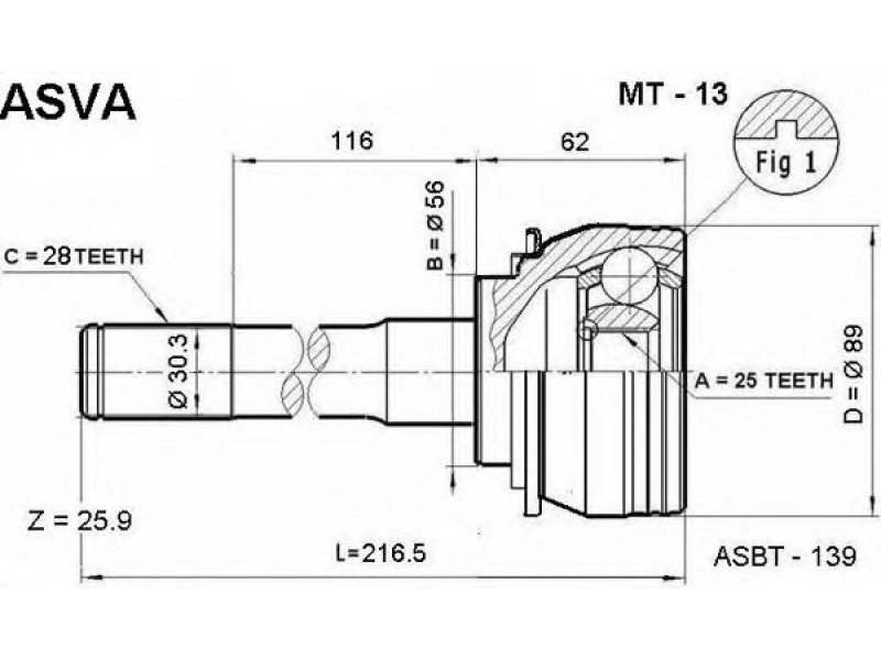 montavimo vieta: priekinė ašis jungties tipas: CV sujungimas vidinis krumplys, rato pusė: 25 išorinis krumplys, rato pusė: 28 sandariklio skersmuo [mm]: 56