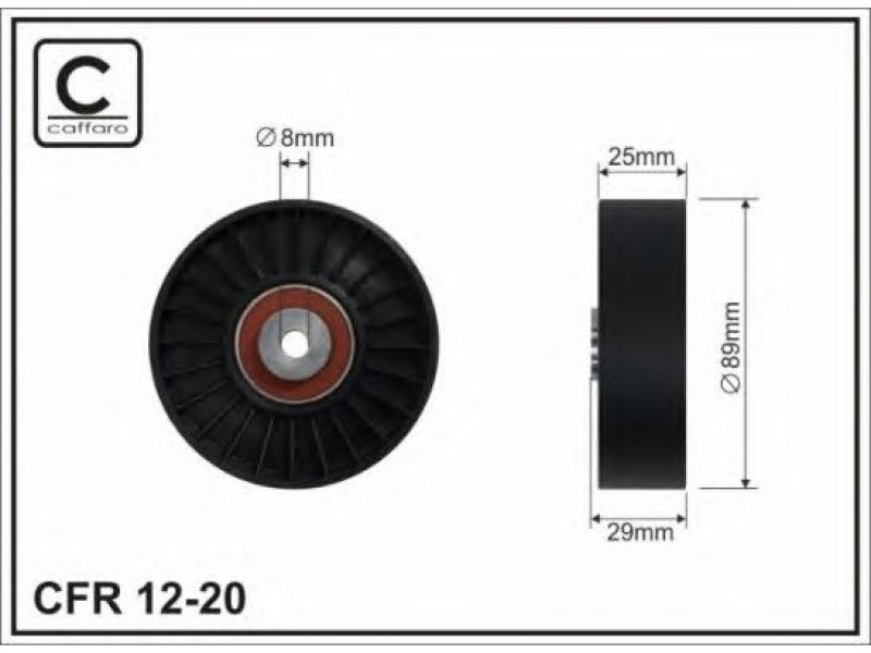 išorinis skersmuo [mm]: 89 vidinis skersmuo [mm]: 8 plotis [mm]: 25 medžiaga: plastmasė |