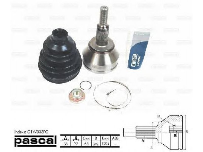 Jungčių komplektas, kardaninis velenas G1W033PC PASCAL |
