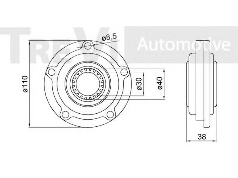 išorinis skersmuo [mm]: 110 aukštis [mm]: 38 angos apskritimo skersmuo [mm]: 40 |