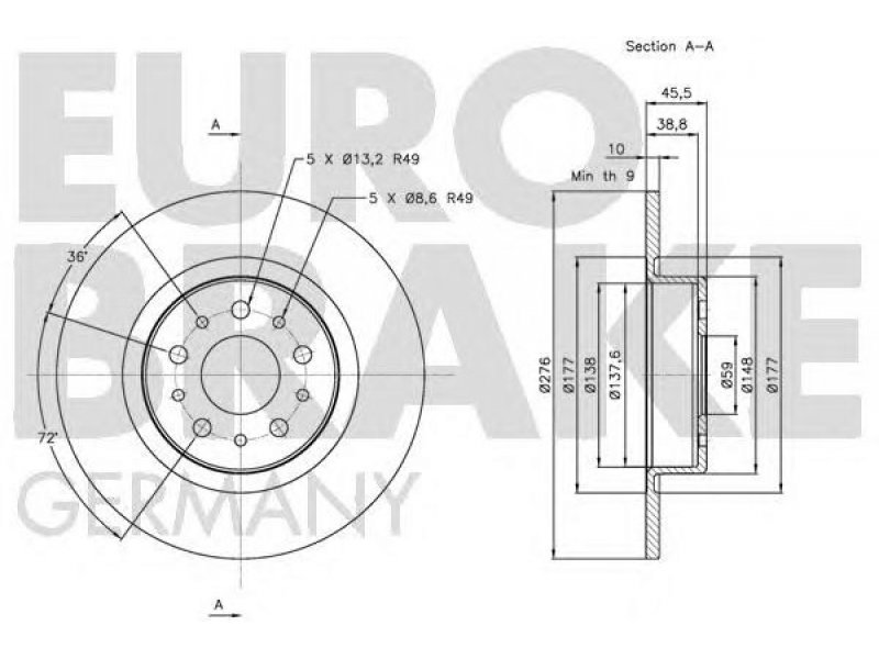 skersmuo [mm]: 276 aukštis [mm]: 45,5 svoris [kg]: 4,06 stabdžių disko tipas: visiškai stabdžių disko storis [mm]: 10 minimalus storis [mm]: 9 centravimo skersmuo [mm]: 59 žiedų angų skaičius: 5 montavimo vieta: galinė ašis