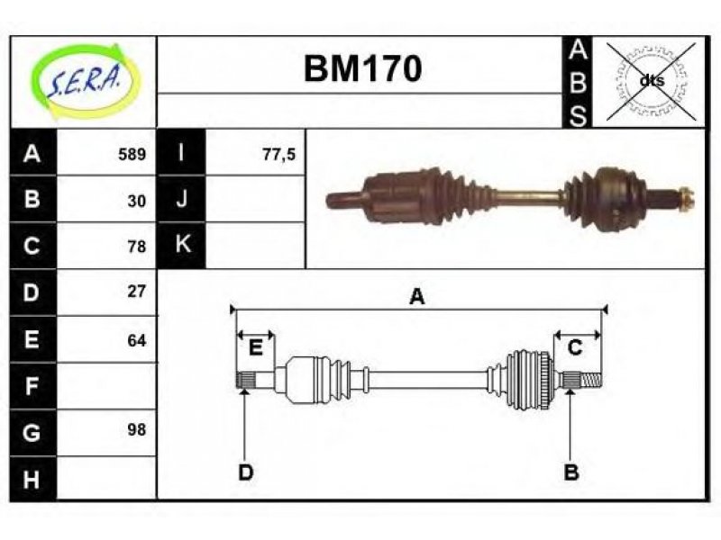 ilgis [mm]: 589 išorinis krumplys, rato pusė: 30 skersmuo 1 [mm]: 98 išorinis krumplys. kt. pusė: 27 skersmuo 2 [mm]: 77,5 stabdymas / važiavimo dinamika: transporto priemonėms be ABS transmisijos tipas: visiškai automatinis montavimo vieta: priekinė ašis, kairė