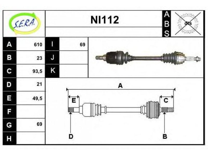 ilgis [mm]: 608 išorinis krumplys, rato pusė: 23 skersmuo 1 [mm]: 69 išorinis krumplys. kt. pusė: 21 skersmuo 2 [mm]: 69 stabdymas / važiavimo dinamika: transporto priemonėms be ABS |