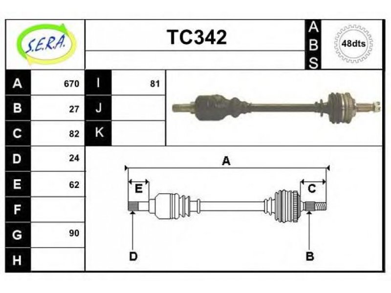 ilgis [mm]: 647 išorinis krumplys, rato pusė: 27 skersmuo 1 [mm]: 90 išorinis krumplys. kt. pusė: 24 skersmuo 2 [mm]: 81 krumplių skaičius: 48 stabdymas / važiavimo dinamika: transporto priemonėms su ABS kardaninis velenas: su ABS žiedu transmisijos numeris: BE3 transmisijos tipas: mechaninė transmisija montavimo vieta: priekinė ašis, kairė